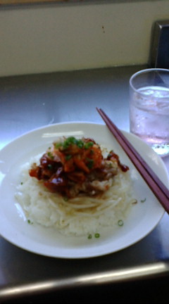 予定では、カップヌードルとおにぎり。